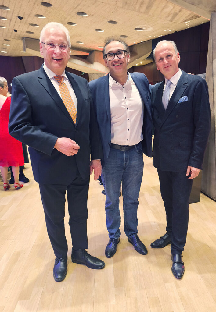 Gratulierten Hausherr Hubert Nägel (r.), Geschäftsführer der Nägel & Events GmbH & Co. KG, zu seiner großartigen Spendengala: Bayerns Innenminister Joachim Herrmann und Henning Nürnberg, Initiator und Veranstalter des „Business Metropol Forums“ für die Metropolregion Nürnberg